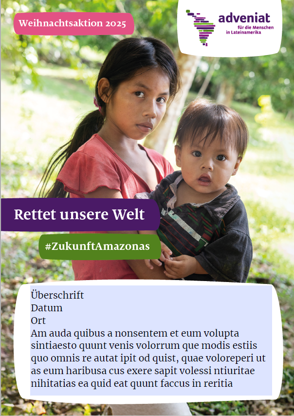 Das Plakat stellt das Motto der diesjährigen Adveniat-Aktion vor: „Rettet unsere Welt – Zukunft Amazonas“.
